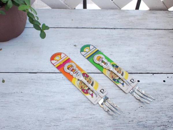 - レトロビンテージキッチン雑貨*ベビー スパゲティフォーク 男の子女の子柄2本セット☆カトラリー