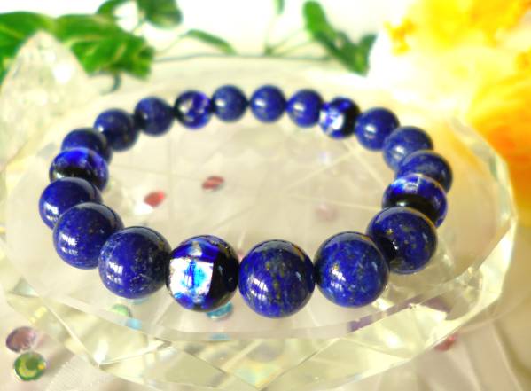 > ★幸運を呼ぶ★聖なる石★ウルトラマリンブルー★ラピスラズリ★とんぼ珠(ホタルガラス)☆ブルーシルバー♪ ☆10mm☆ ☆17cm☆