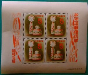 - 昔懐かしい切手 年賀小型シート「こけし」 1956.1.20.発行