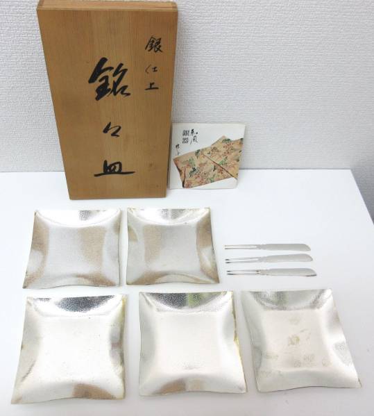 - 並品■AZUMA アズマ 銀仕上 銘々皿角波 角皿 小 ピックフォーク 管理1612 C-10