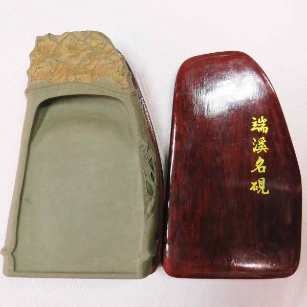 - 【値下げ交渉は質問欄より!】端渓名硯☆モスグリーン色★笹彫り★木箱入り美品☆中国