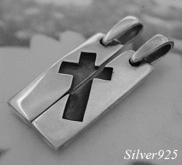 - シルバー925銀の十字架クロス マーク プレート ペア ペンダント セット