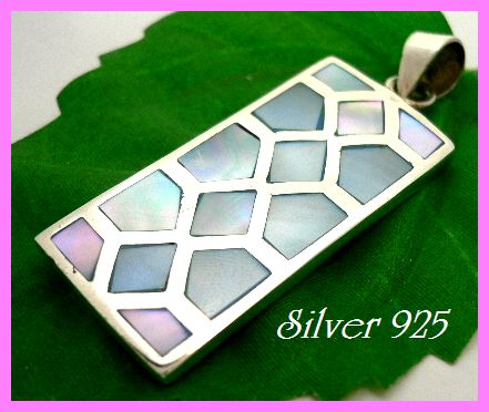 - シルバー925銀のシェル貝殻入りインレイ プレート ペンダント/ブルー