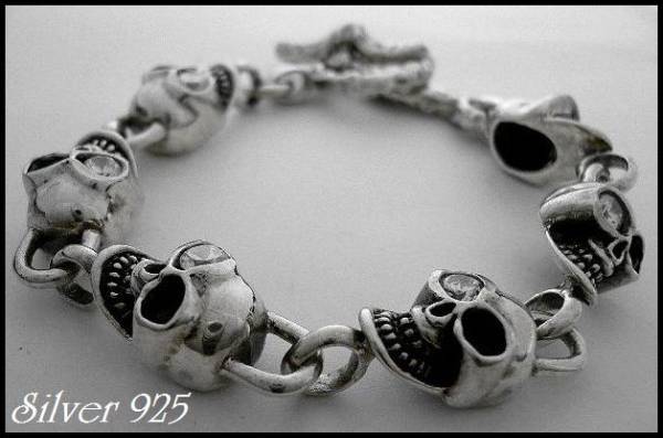 - シルバー925純銀ジルコニア付シックス スカル髑髏ブレス/1点限り