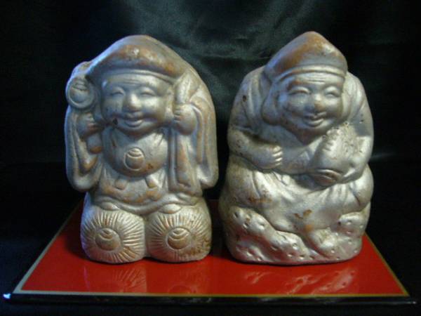 - ..研店 七福神 恵比須様 2体セット 置物 瀬戸物?陶器? アンティーク 汚れ、傷多々ありです。