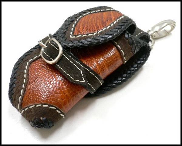 > 牛革×オーストリッチ革[茶]×サメ革シャーク[こげ茶]レザー携帯ケース/モバイルホルダーALL20%OFF