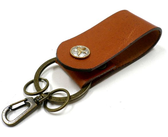 - 牛革ベルトループ キーホルダー ブラウン/星メタルコンチョ付/ALL20%OFF