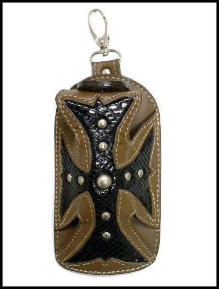 - 牛革×蛇革パイソン黒スタッズ十字架クロス携帯ケース/レザー モバイル ホルダーALL20%OFF