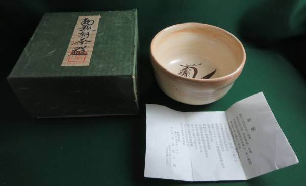 - 送料無料 瀬戸焼 刷毛目 松鶴 田沼 起八郎 抹茶茶碗 茶道具 美品 共箱あり 送料無料