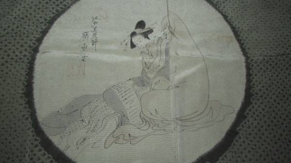 - (旧家・蔵出し)(古布・絞り美人画に東海道五十三次模様男物長襦袢)貴重珍品