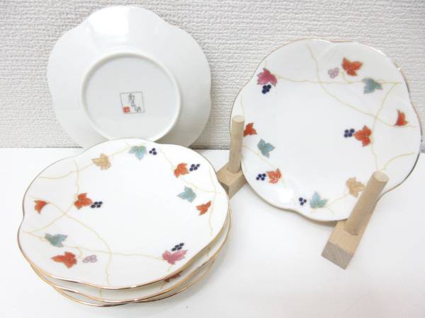 - 極美品・激レア■HOYA 保谷謹製 あずみ野 小皿 5客セット 金縁 管理1701 D-14