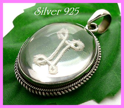 - シルバー925銀の天然石 水晶 星座ふたご座シンボル彫りペンダント