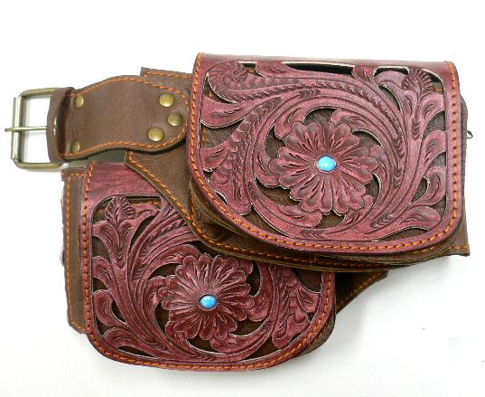 - 牛革 透かしカービング花柄 ヒップバッグ/レザー ウエストバッグALL20%OFF