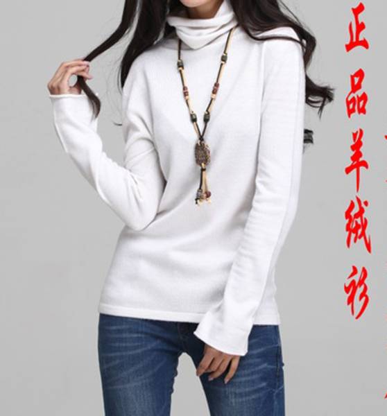 - 着心地の良いカシミヤ混・レディースタートルネックセーターL 白