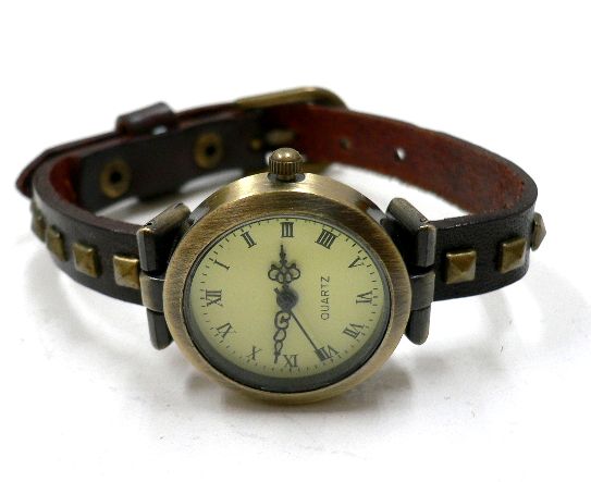 - 牛革スクエア スタッズ レザー ブレス ウォッチ ブラウン/1点のみ