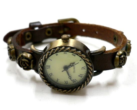 - 牛革ローズ薔薇スタッズ レザー ブレス ウォッチ ブラウン/1点のみ