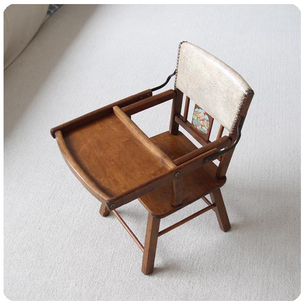 - イギリス アンティーク 木製ベビーチェア/ウッドチェア/レアアイテム/店舗什器/インテリア/赤ちゃん用 J-889