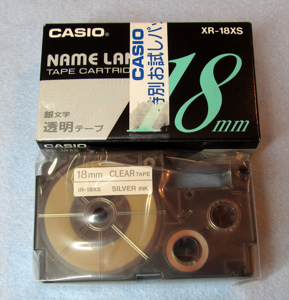 - CASIO/ネームランド/銀文字/透明テープ/18mm/XR-18XS/①