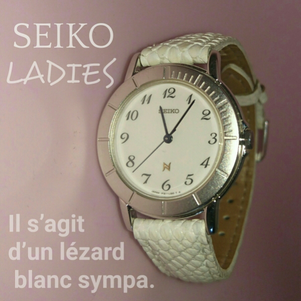 > 【美品中古】 SEIKO セイコー レディース ウォッチ ホワイト 腕時計 本革 リザード ベルト W047