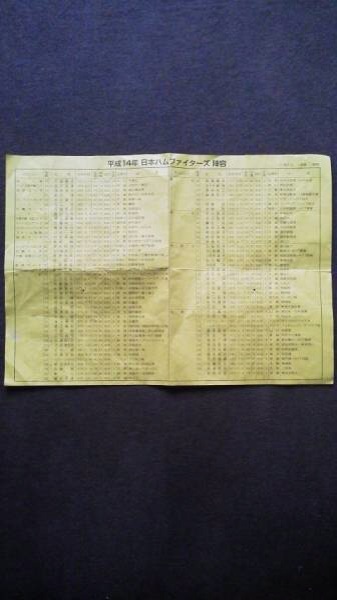 - 日本ハム ファイターズ 2002年 メンバー表 田中賢介 小笠原道大 森本稀哲 田中幸雄 金子誠 奈良原浩 金村暁 下柳剛 建山義紀 Fighters