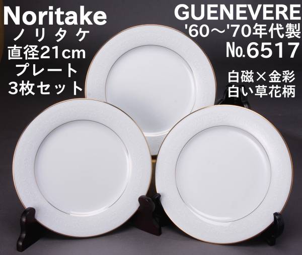 - Noritake JAPAN ノリタケ GUENEVERE 6517 プレート皿3枚セット 直径21㎝ 白×金彩 KA-6438