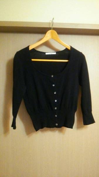 - Jines ジネス カーディガン カットソー トップス ニット はおりもの 黒 ガラスボタン 可愛い系 上品 きれいめ キレイ系 かっこいい系
