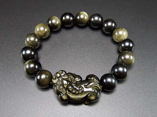 - 『蓄財運』魔よけ天然石4Aゴールドオブシディアン・ヒキュウブレ