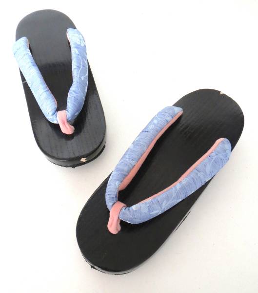 - 二点落札で送料無料! N048 下駄 夏祭り 浴衣 ブラック 水色 ピンク 22.3~23㎝相当 S