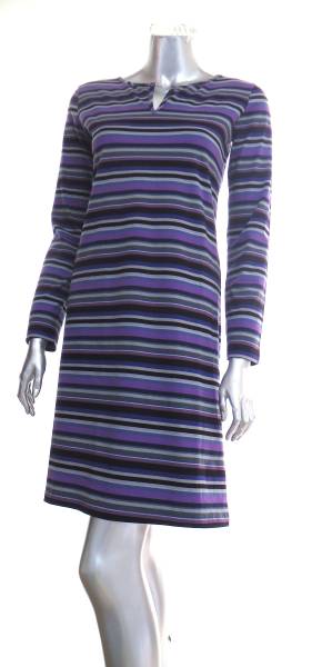 - 二点落札で送料無料! G048 GALLO ガッロ 紫 ボーダー 長袖 コットン ワンピース パープル S 綿