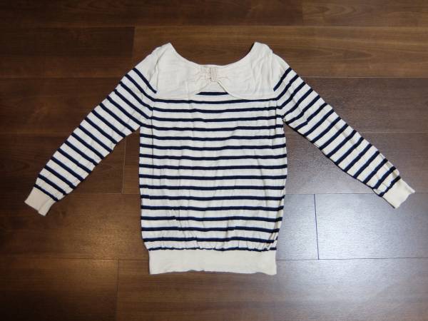 - パールリボンボーダーカシミアニット38号美品