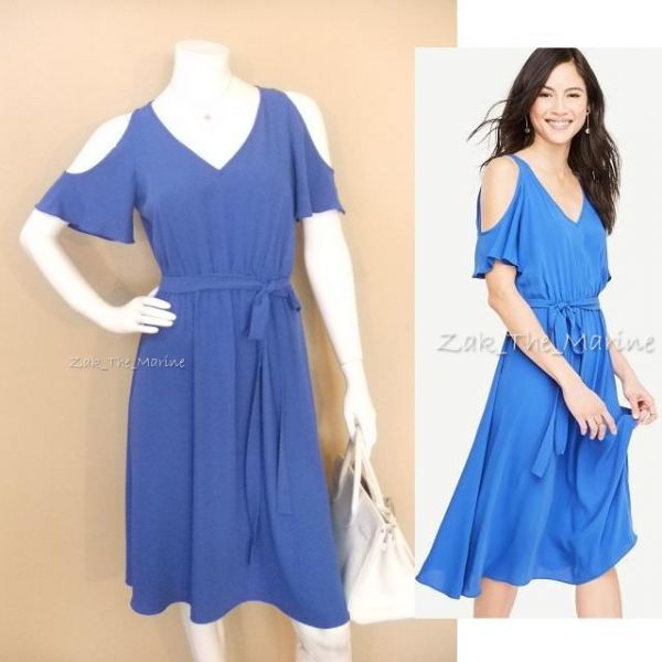 - 新作 アンテイラー ANN TAYLOR 今季 オフショルダー 青 ブルー ワンピース 0 オープンショルダー