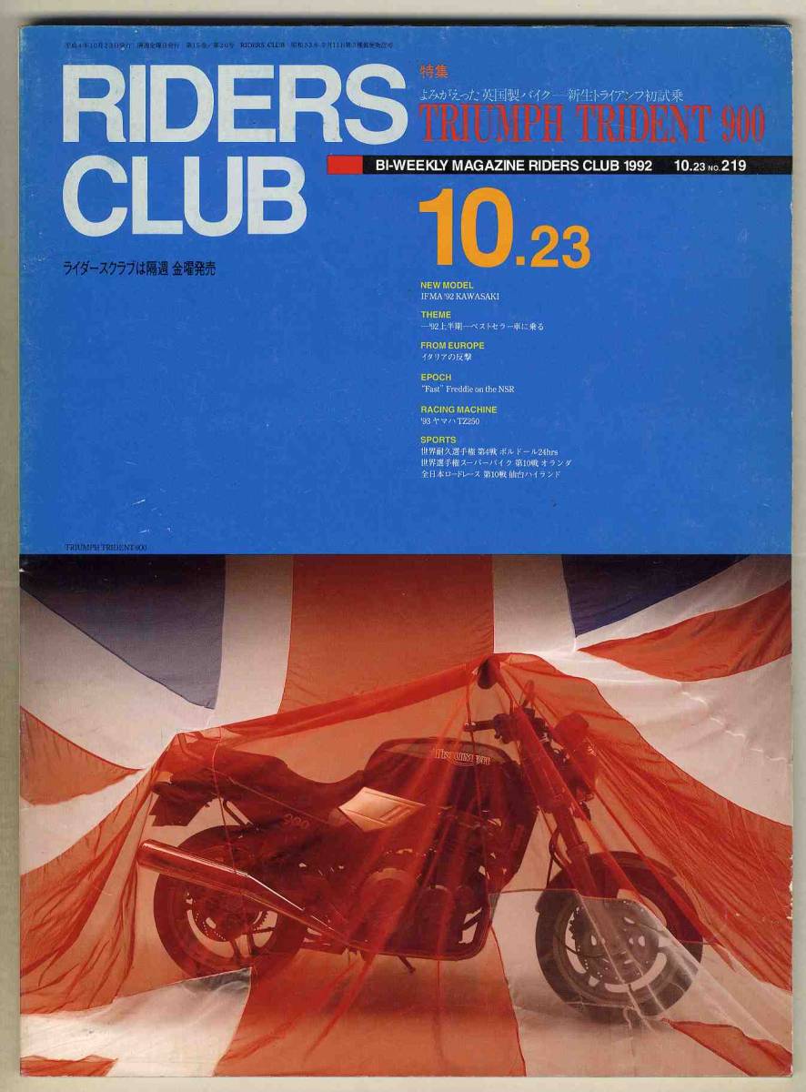 書名/記事: 92.10.23 ライダースクラブRIDERS CLUB/特集=トライアンフトライデント900、ヤマハTZ250、ビモータdb2、…