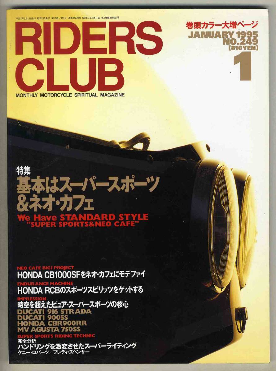 書名/記事: 95.1 ライダースクラブRIDERS CLUB/基本はスーパースポーツ&ネオ・カフェ、ホンダCB1000Fをネオ・カフェにモディファイ、ドゥカティ916ストラーダ、ドゥカティ900SS、ホンダCBR900RR、MVアグスタ750SS、スーパーライディング - ケニー・ロバーツ/フレディ・スペンサー、…