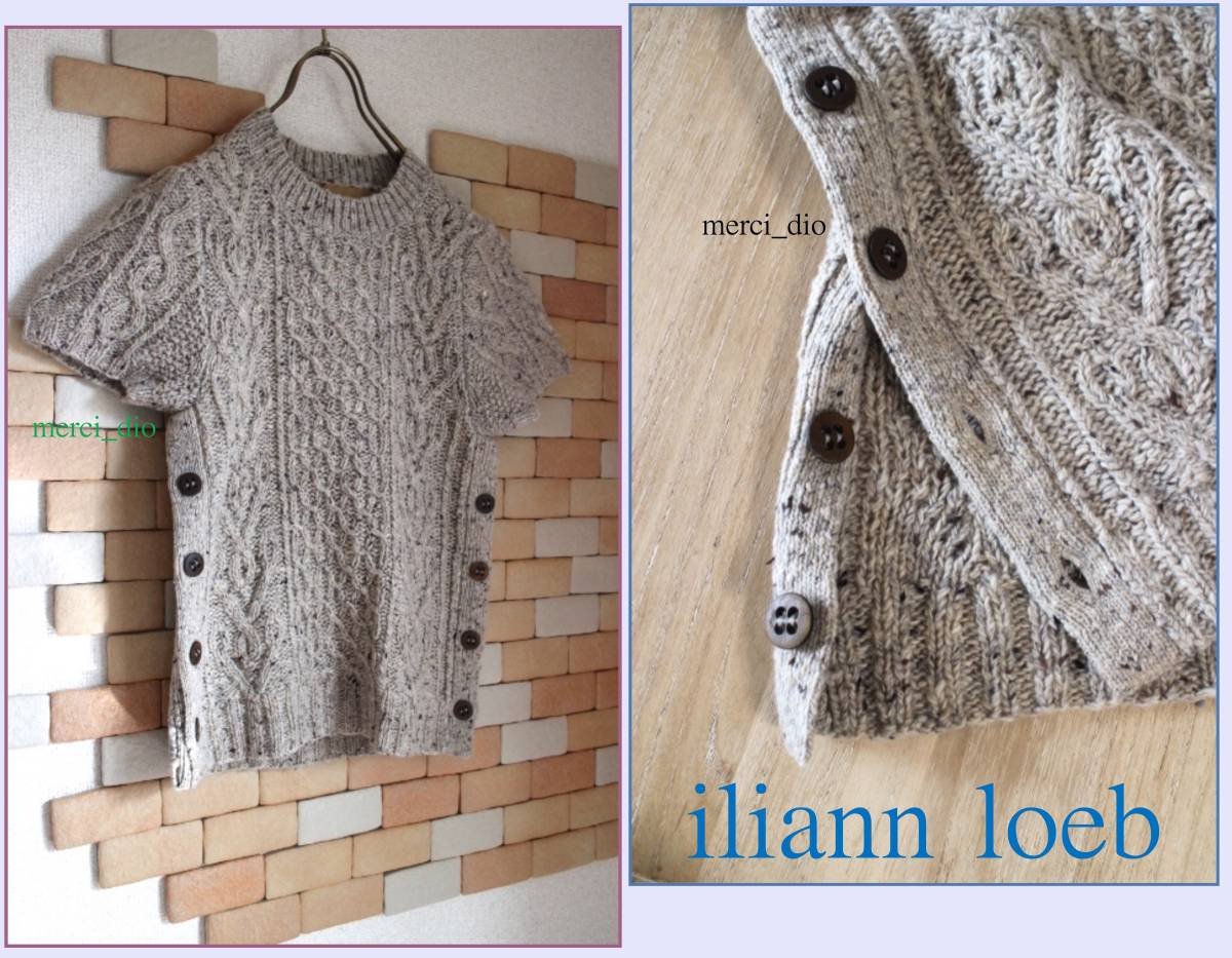 > 新品 イリアンローブ iliannloeb グレージュ ざっくり編み ショートスリーブ サイドボタン ニット トップス 定価27300円 新品タグ付