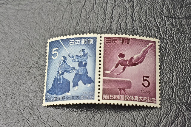 > 【切手】国民体育大会記念シリーズ ・1960年 第15回 剣道 5円 ・1960年 第15回 跳馬 5円 未使用
