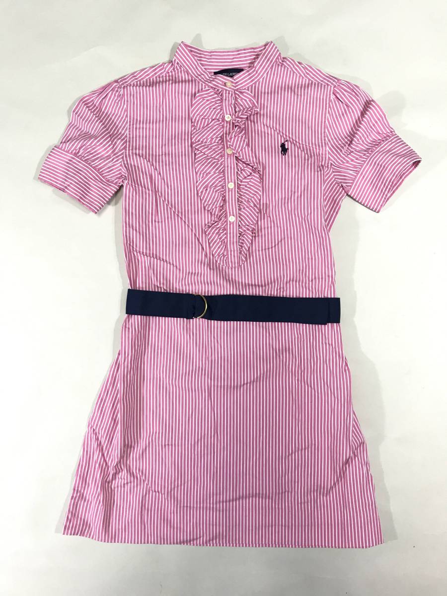 - 新品 10159 ガールズ 14 ワンピース ストライプ polo ralph lauren ポロ ラルフ ローレン コットン ピンク 女性 レディース