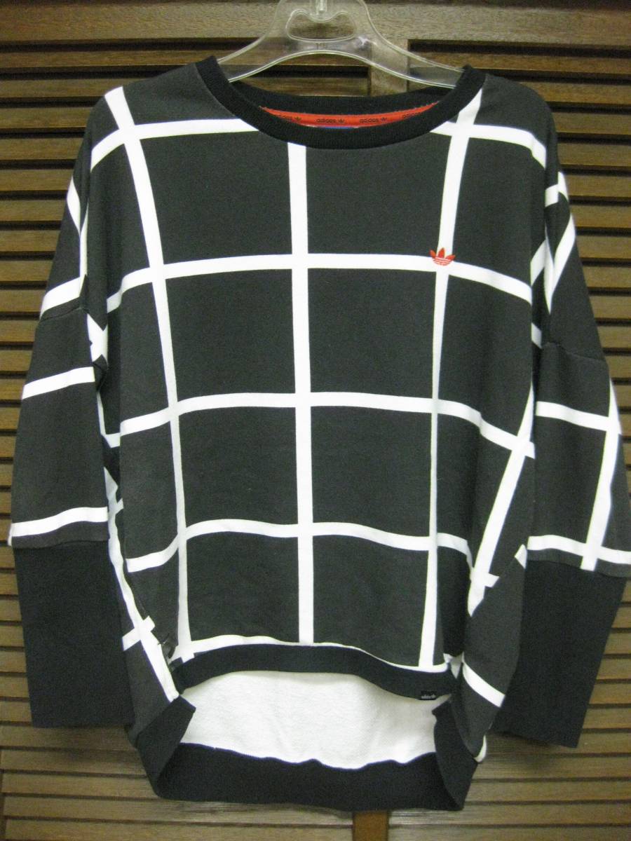 - adidas 総柄スウェット サンプル usSサイズ 黒/白 USED