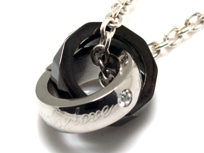 - ★人気★変色無★手入れ不要★肌に優しい★アレルギー&温泉&海水浴ご使用OK★ステンレスネックレス★ダブルリング&ブラック&ジルコニア★