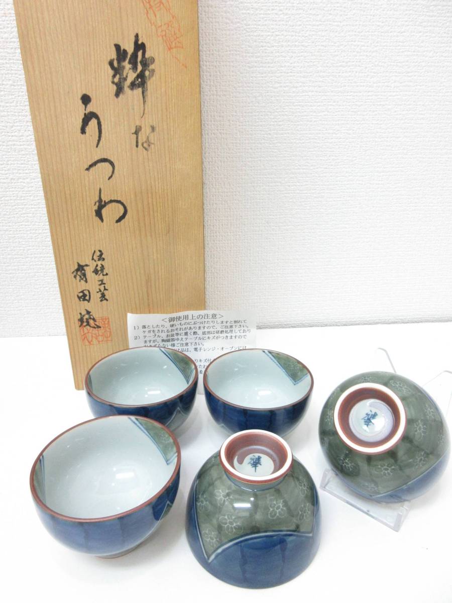 > 未使用品・激レア■有田焼 華陶窯 粋なうつわ 湯呑 5客揃 木箱 銘入り 管理1712 G-6