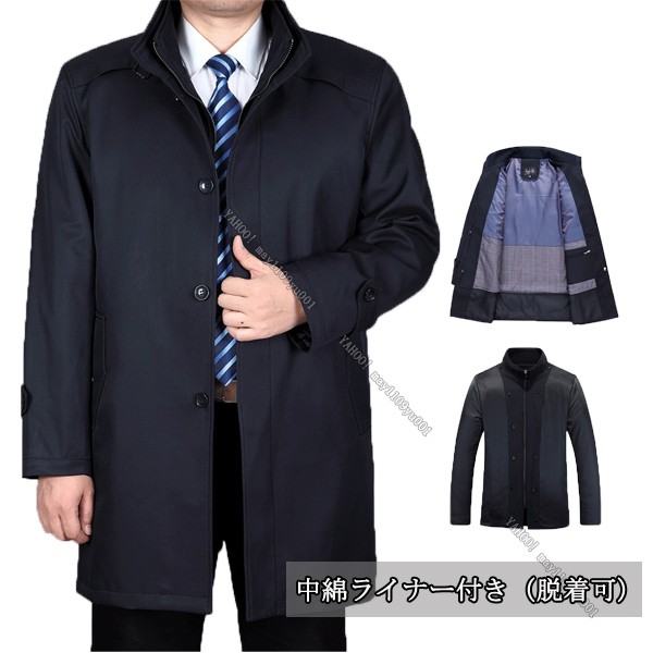 - 【撥水加工】ステンカラーコート スプリング メンズ ビジネスマン スリッカー ライナー春夏秋冬紳士フォーマル男性用 ダークブルー・L