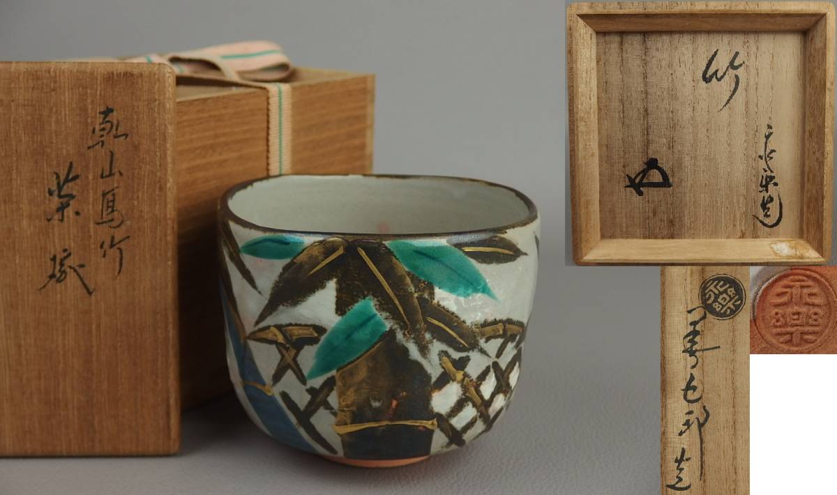 > 【骨董・茶道具】★千家十職 永楽善五郎(十六代即全) 鵬雲斎書付★★乾山写竹茶碗 ys025sdl.8