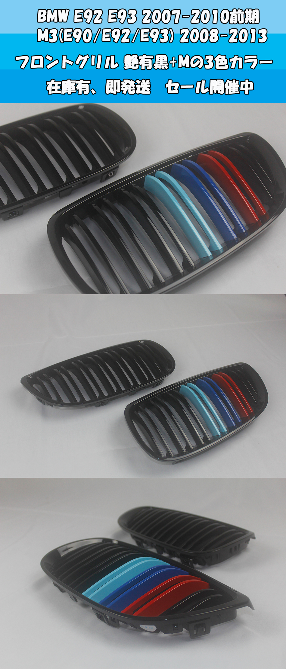 > 純正交換用 左右セット 取付簡単 在庫有 BMW E92 E93 前期 M LOOK フロントグリル 光沢黒+Mの3色カラー 07-10 M3