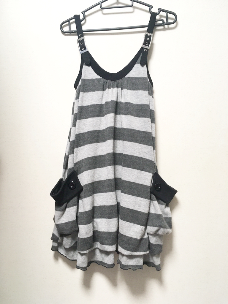 - 新品 黒×グレー ボーダー バルーンワンピース