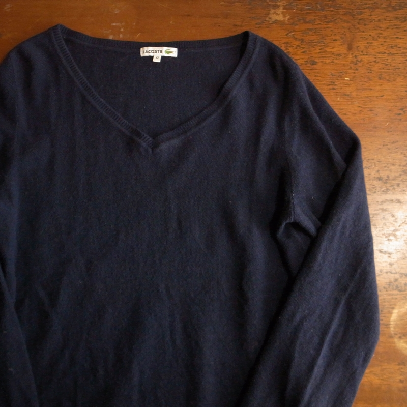 - Lacoste ラコステ Vネック ニット セーター 42 ネイビー / 紺 ゴルフ