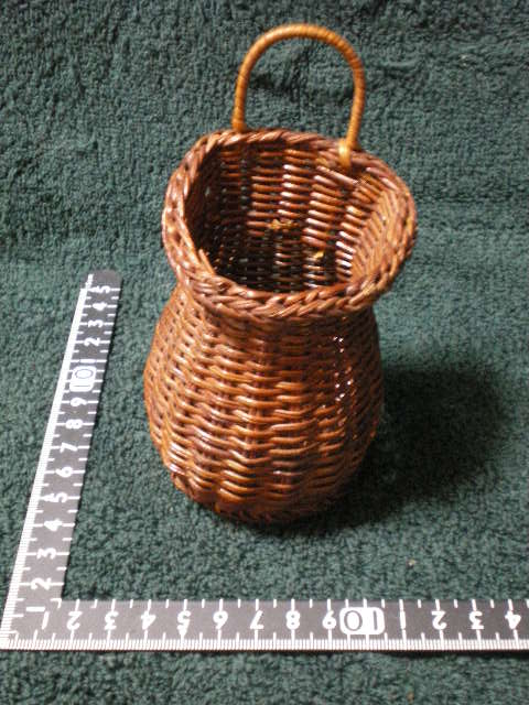 - 珍品フリマ・竹・籐] 物入れ 花入れ 花びん 壁掛け 大きさ:かご直径 6cm かご高さ 10cm 全高さ 13cm[送料無料]
