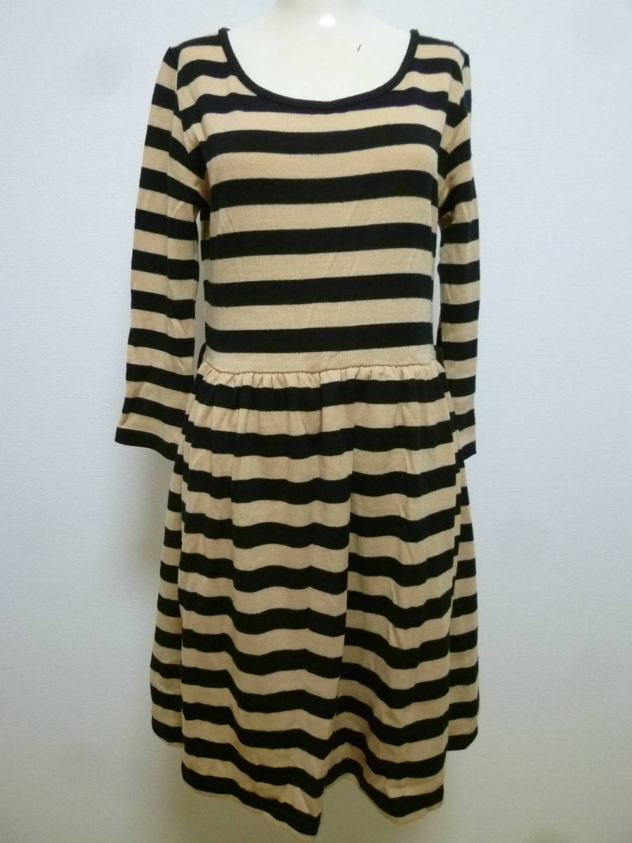 > ROPE PICNIC/ロペピクニック♪ベージュ×黒ボーダーワンピース38/ジュン♪215