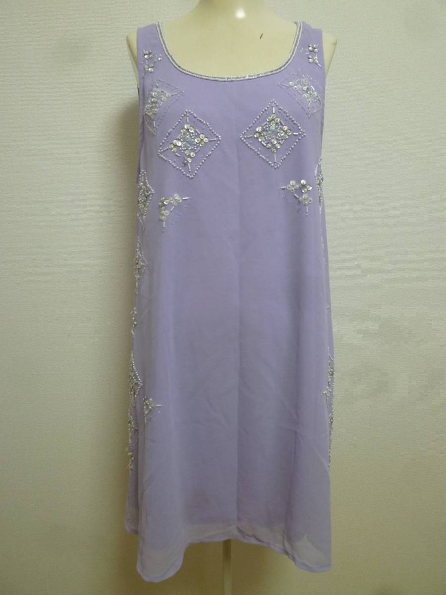 > MURUA/ムルーア♪淡パープルビーズスパンコール付きシフォンワンピースF/紫♪215