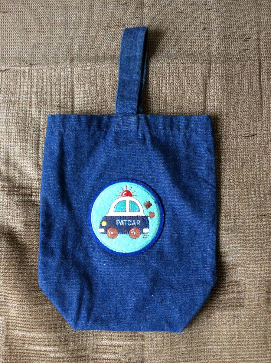- 幼稚園、小学校低学年 上履き入れ シューズバッグ デニム生地