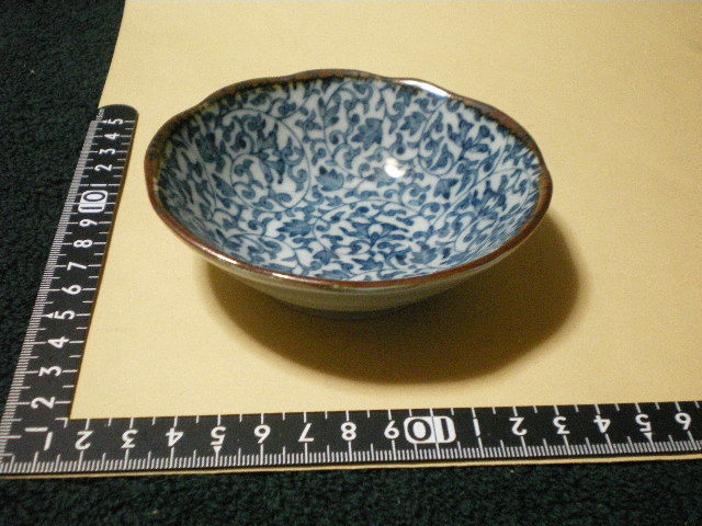 - 珍品フリマ] 陶器 古風な柄の小皿 1枚 直径10.8cm 全高 3.5cm ちょっと深め[送料無料]
