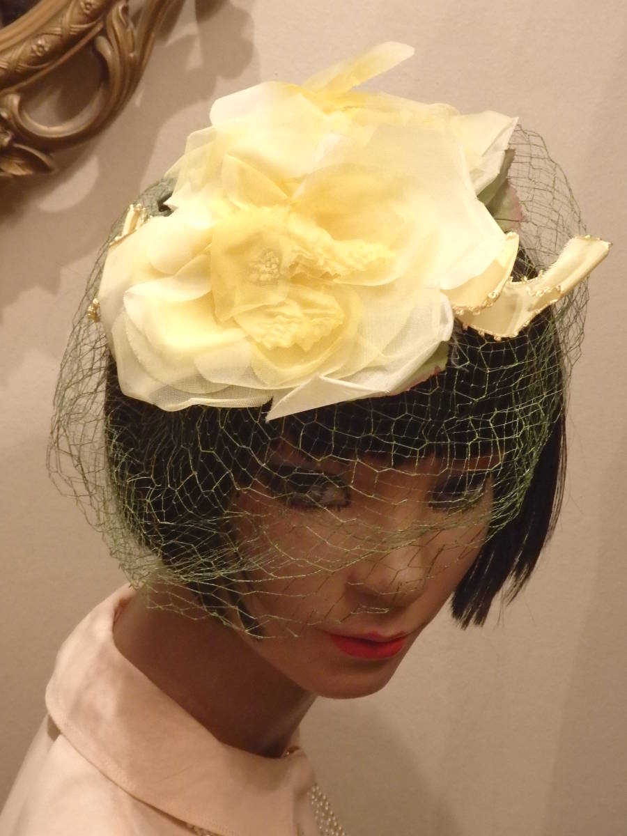 - アメリカヴィンテージ50'sヘッドドレス薔薇チュールパーティーフォーマル衣装コスチューム帽子レトロΓOT